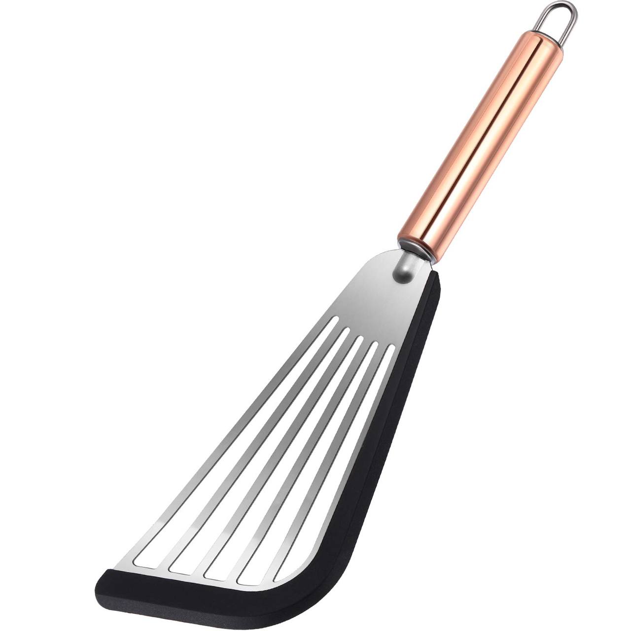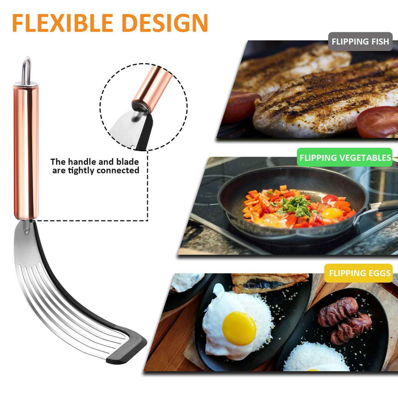 طراحی انعطاف پذیر: لبه بالای نرم سیلیکونی با حرارت بالا و تیغه فولادی ضد زنگ، پخت و پز را ایمن می کند، به نزدیک شدن به سطح غذا و سریعتر بیل زدن کمک می کند. دارای طراحی ارگونومیک، آسان برای شما، طراحی انعطاف پذیر برای استفاده شما راحت است